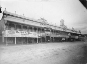 Town Hall, Flinders Street, Townsville, 1914. Photographer: W.J. Laurie. City Libraries Townsville, 315258. The Arcade entrance is below the tower. on November 4, 2018November 4, 2018